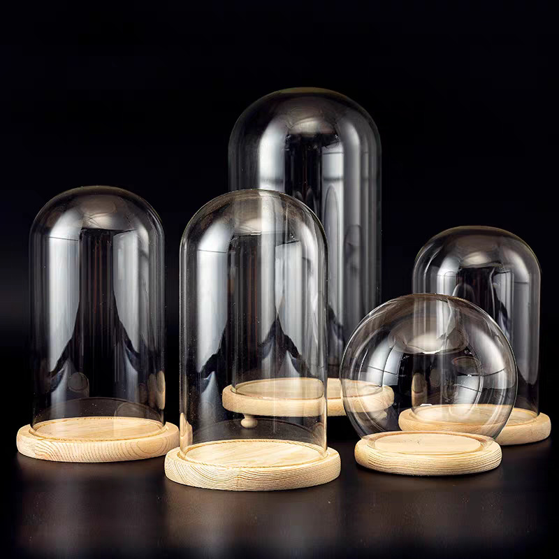 玻璃罩摆件彩色发光灯座球形仿古木复古发光装置展览子手办礼定制