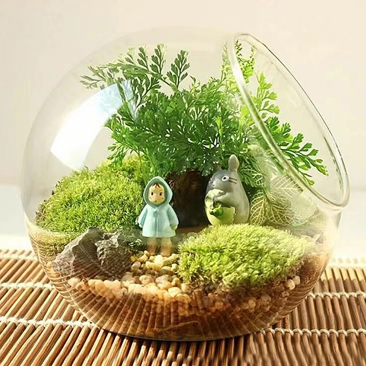 透明圆形斜口玻璃花瓶 微景观生态瓶多肉花瓶水培花器 家居工艺品
