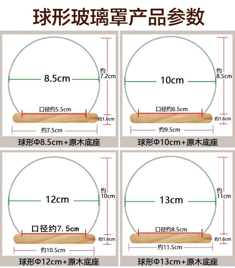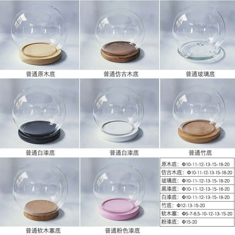 高硼硅球形玻璃罩摆件防尘罩永生花手办生日礼物收纳玻璃瓶可定制
