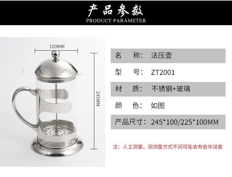 玻璃内胆不锈钢水壶法压壶咖啡壶家用过滤杯手冲法式滤压壶胆定制