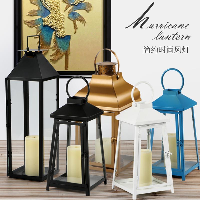 户外铁艺风灯烛台北欧风手提蜡烛落地灯手提灯笼浪漫防风玻璃烛台