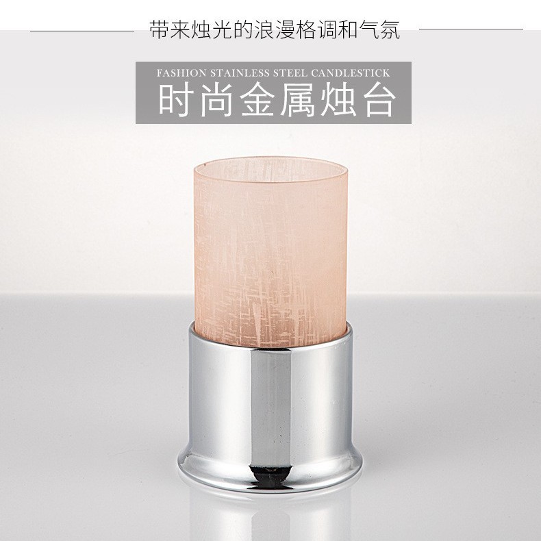 磨砂粉色玻璃烛台简约烛台浪漫婚庆家居摆件蜡烛台欧式摆件可定制