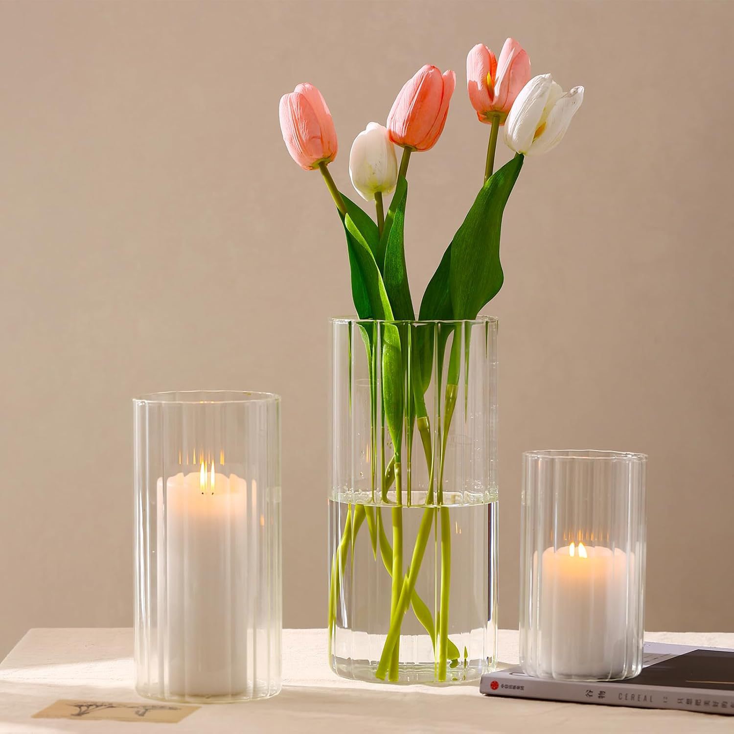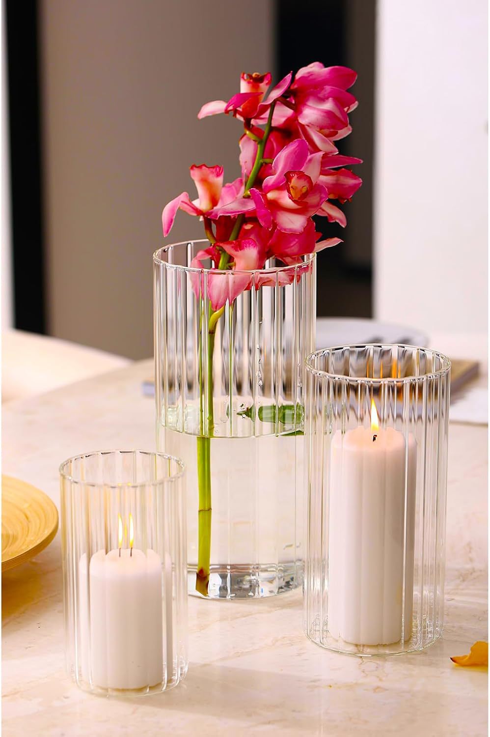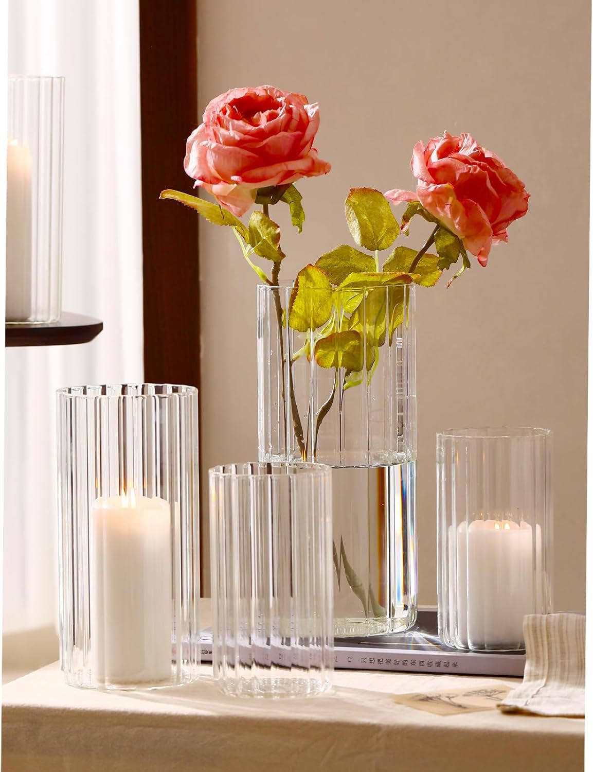 罗纹玻璃蜡烛台家居装饰圆柱蜡烛杯浪漫婚礼氛围感摆件烛台定制