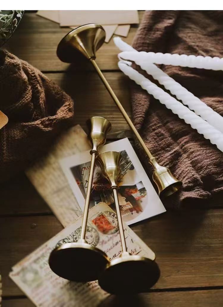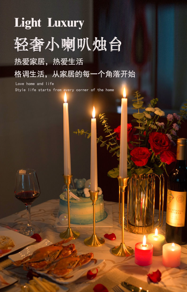 复古家用黄铜色蜡烛台浪漫烛光晚餐餐桌装饰道具结婚生日烛台座