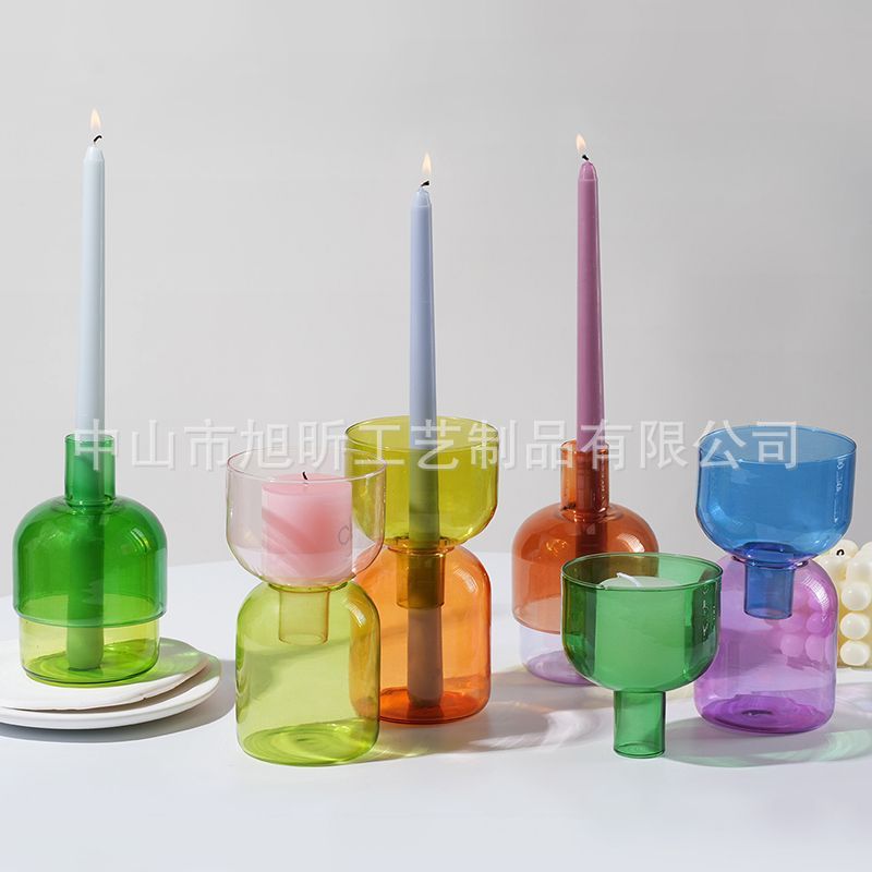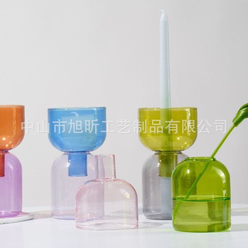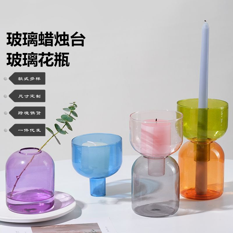 玻璃烛台ins风欧美风格彩色透明装饰花瓶家居装饰精美蜡烛台 定制