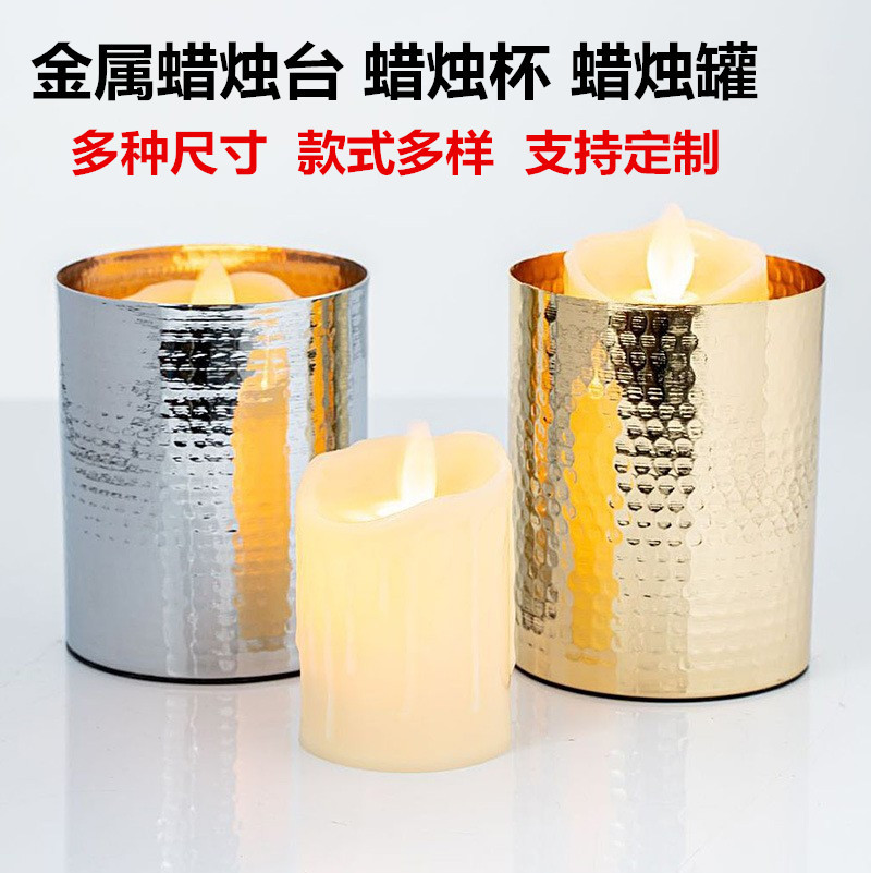 日系圆形创意金属烛台烛光晚餐浪漫蜡烛杯西餐厅家居装饰摆件蜡烛