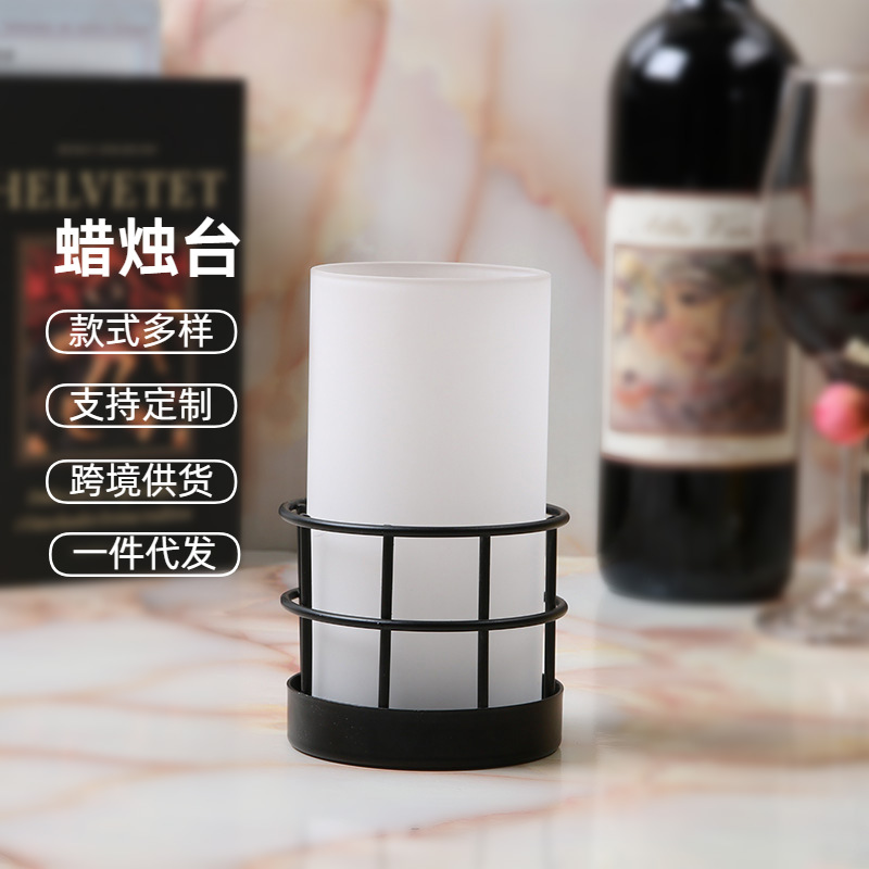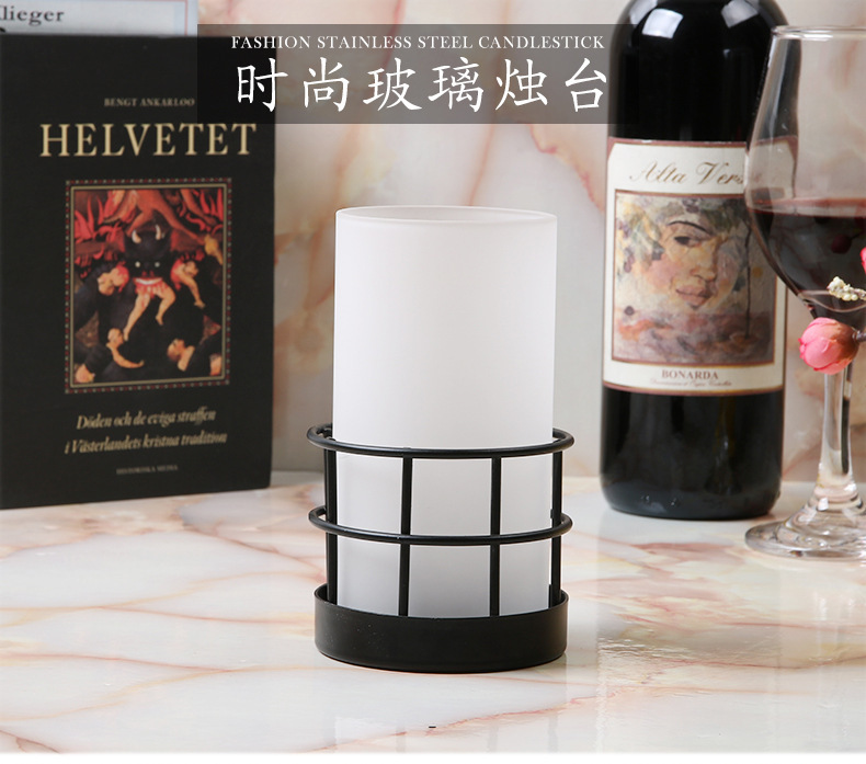欧式金属烛台摆件复古金玻璃风灯软装家居装饰品铁艺批发烛光装饰