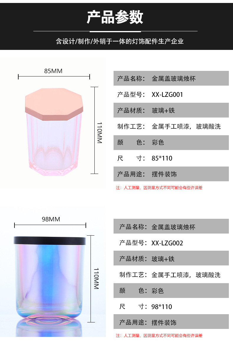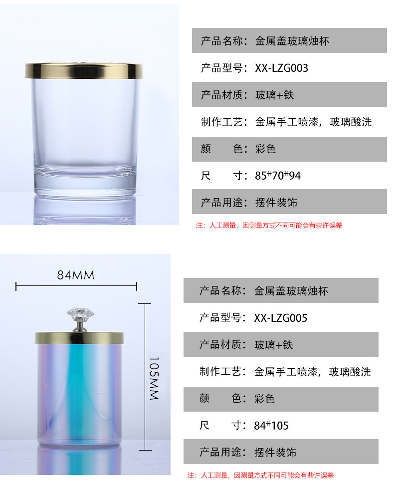 跨境蜡烛杯透光玻璃氛围金属盖蜡烛香薰罐家居七彩设计定制烛台