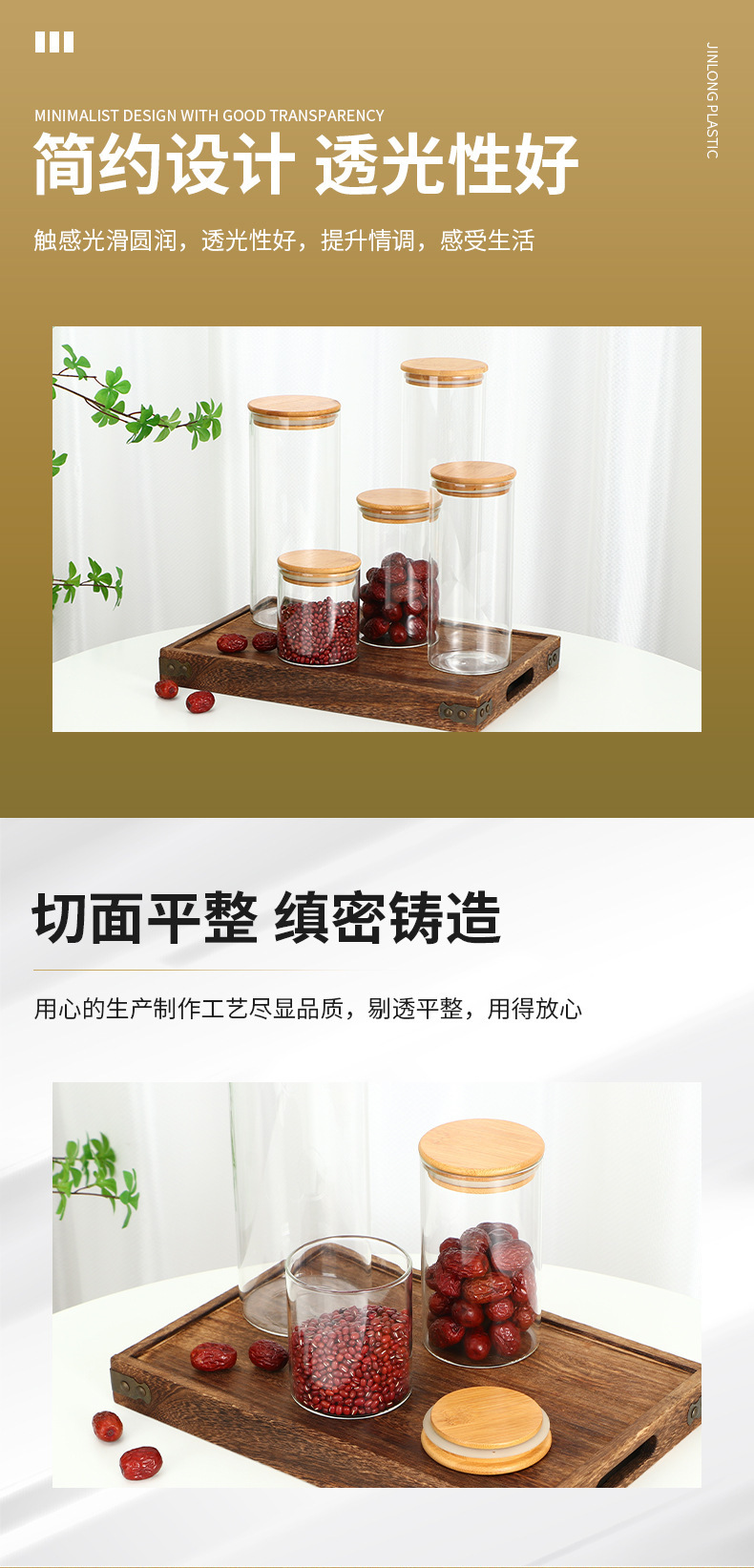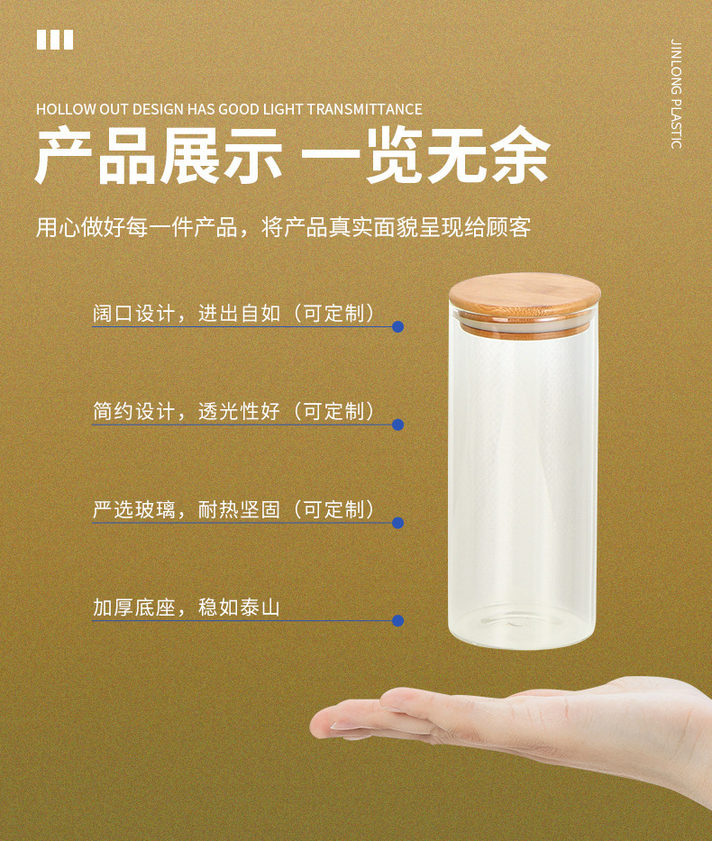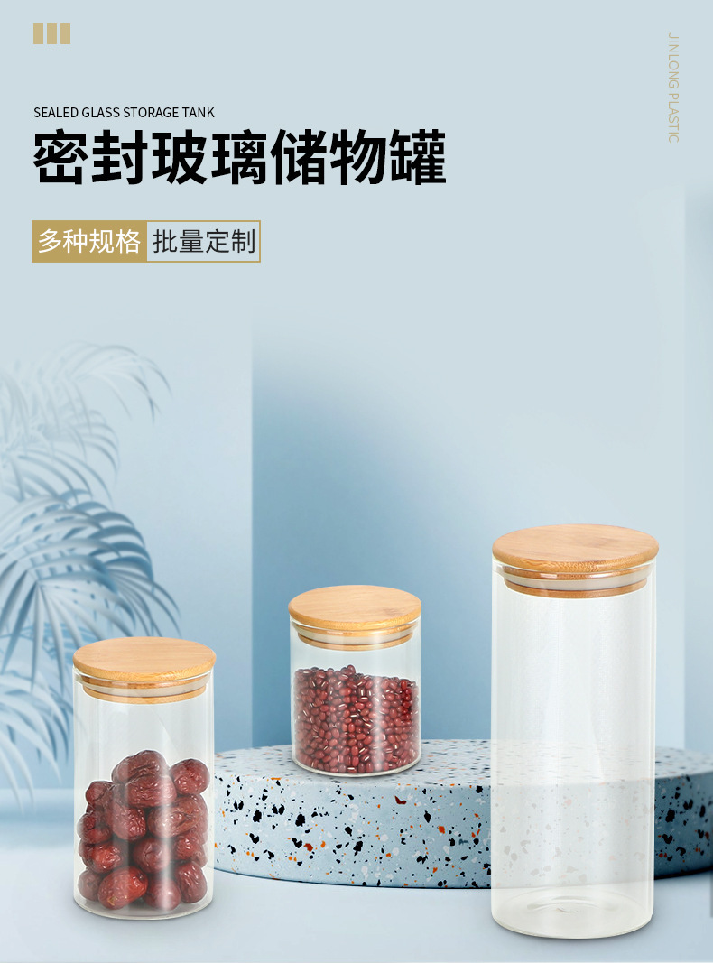 高硼硅玻璃密封罐食品储物罐木盖茶叶陈皮厨房杂粮储物玻璃罐定制