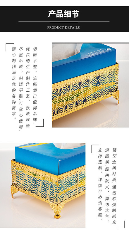 纸巾盒欧式金色创意镂空酒店餐厅纸巾架家居装饰客厅茶几摆件定制