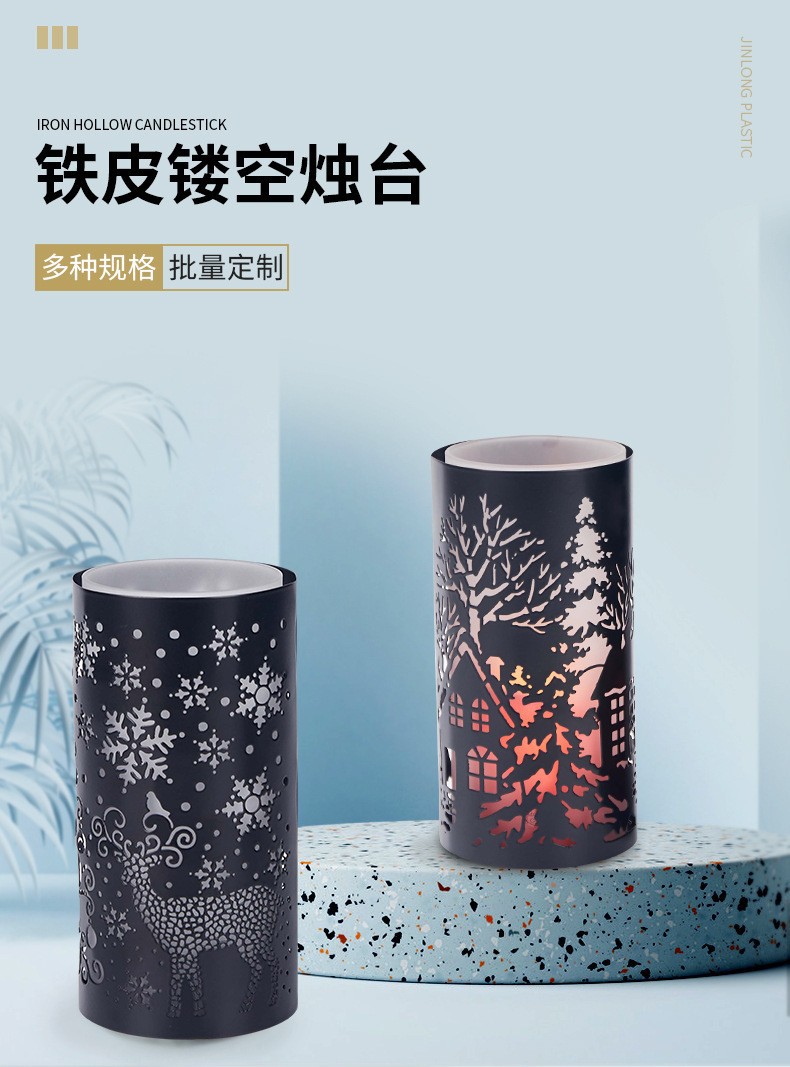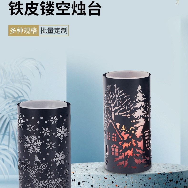 浪漫雪花圣诞蜡烛台复古烛台雕花美式蜡烛杯家居桌面装饰摆件定制