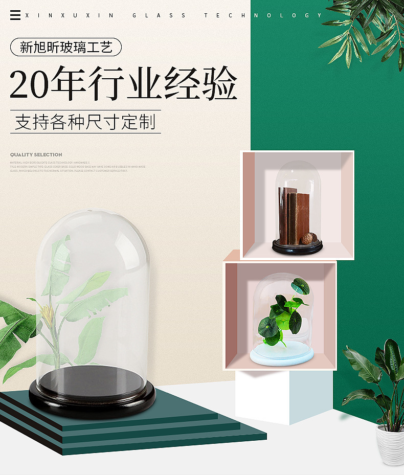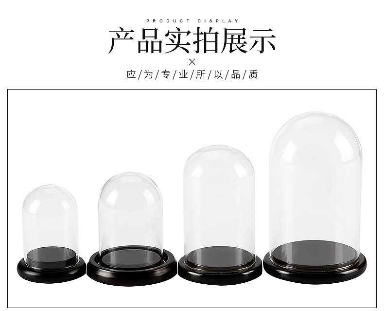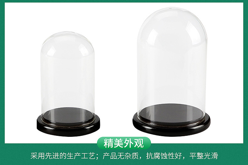 圆头玻璃罩饰品玻璃展示罩多种尺寸模型带木底座定制欧式摆件