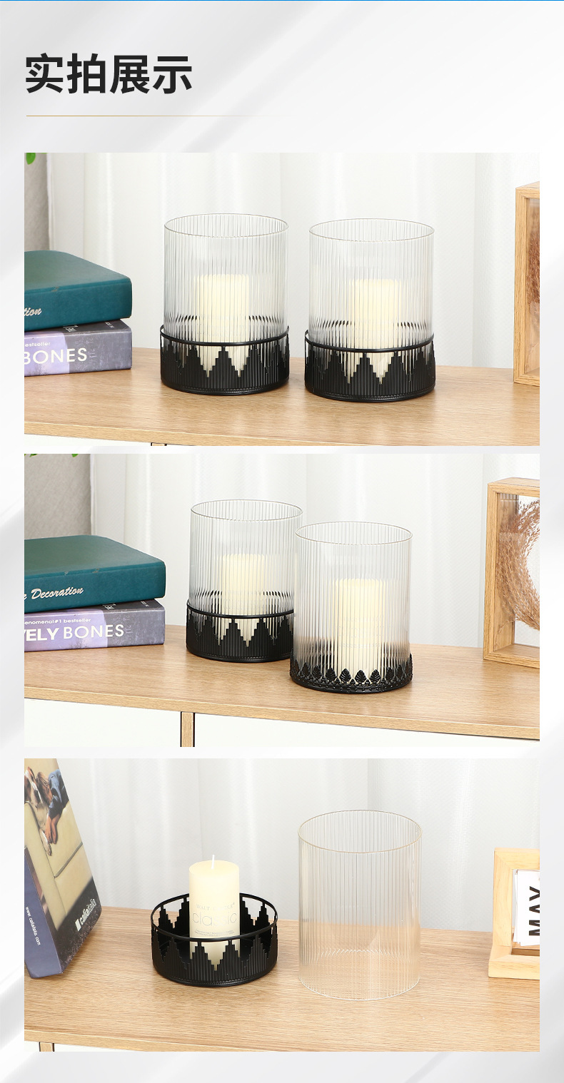 圣诞玻璃烛台浪漫酥油灯摆件家用现代简约煤油灯铁艺蜡烛台创意