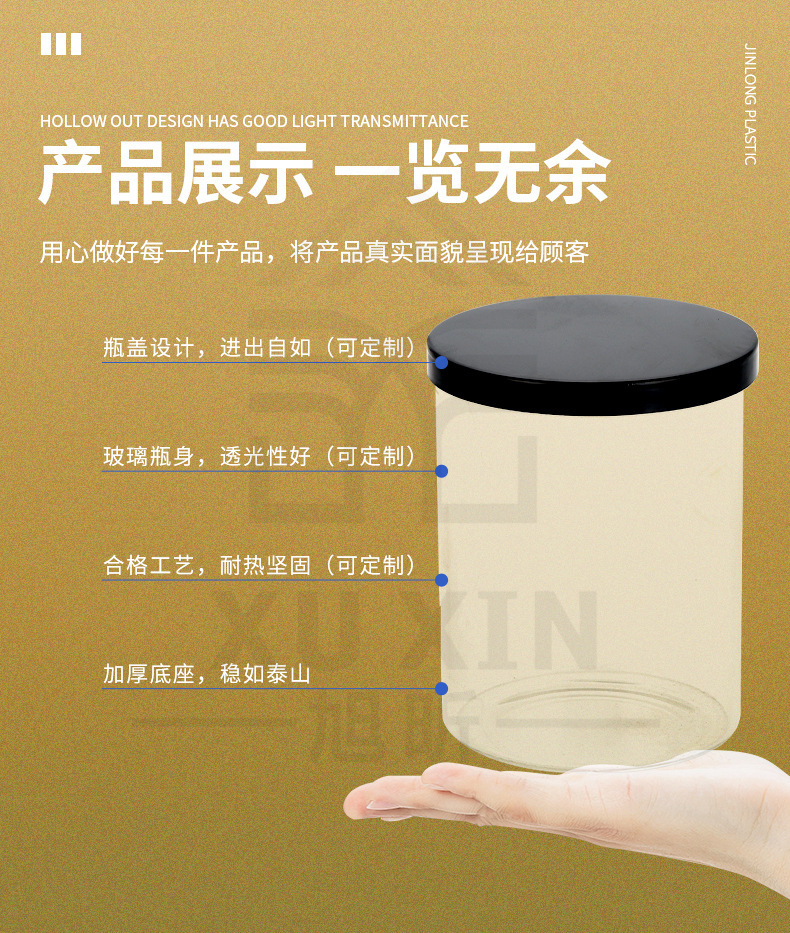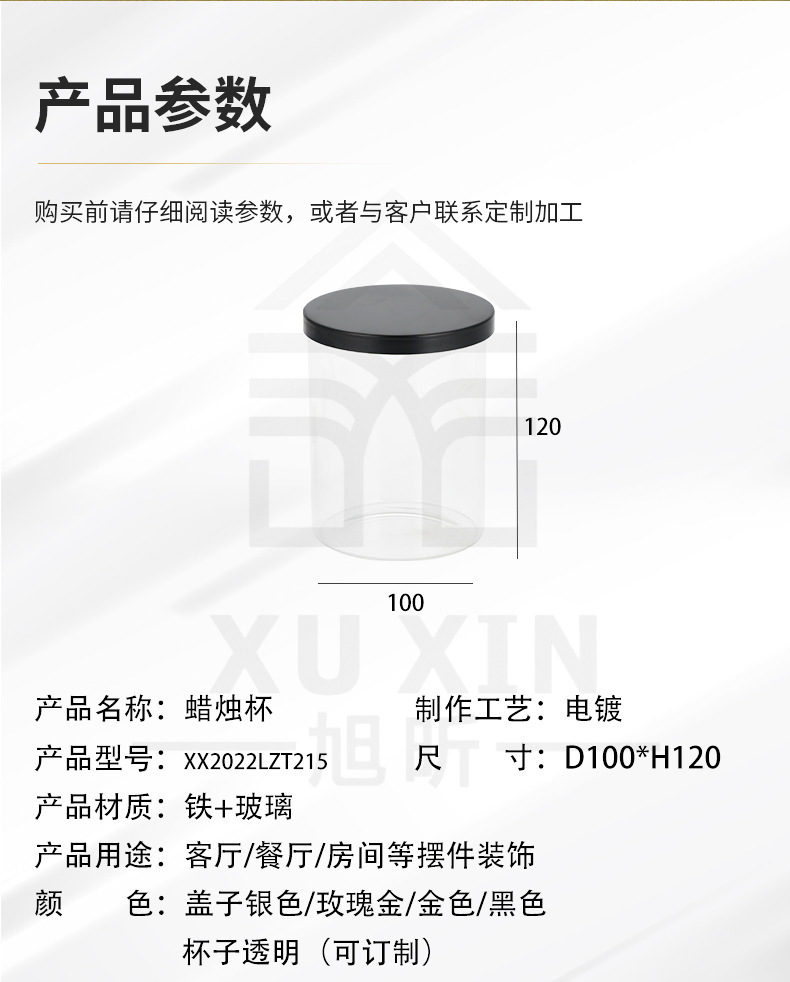 玻璃蜡烛杯氛围密封玻璃杯金属盖家居餐厅桌面装饰摆件定制玻璃瓶
