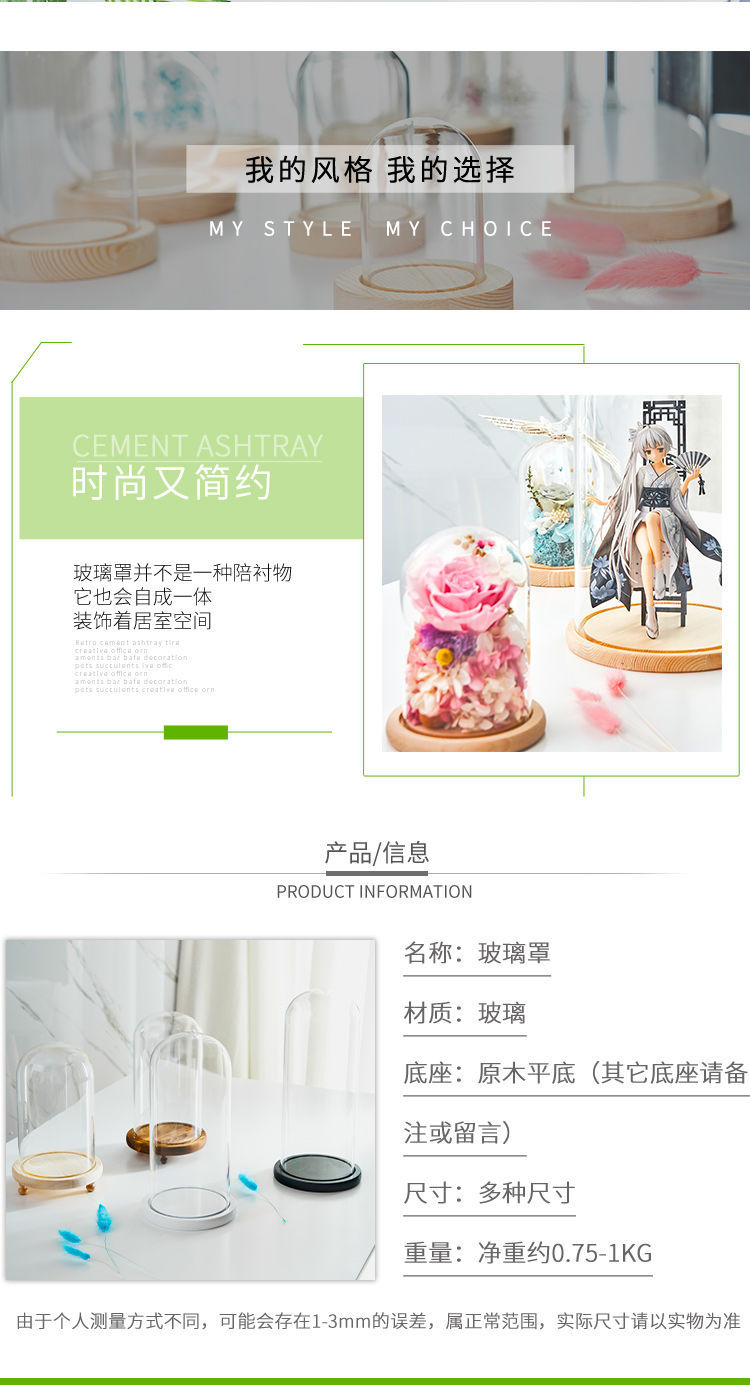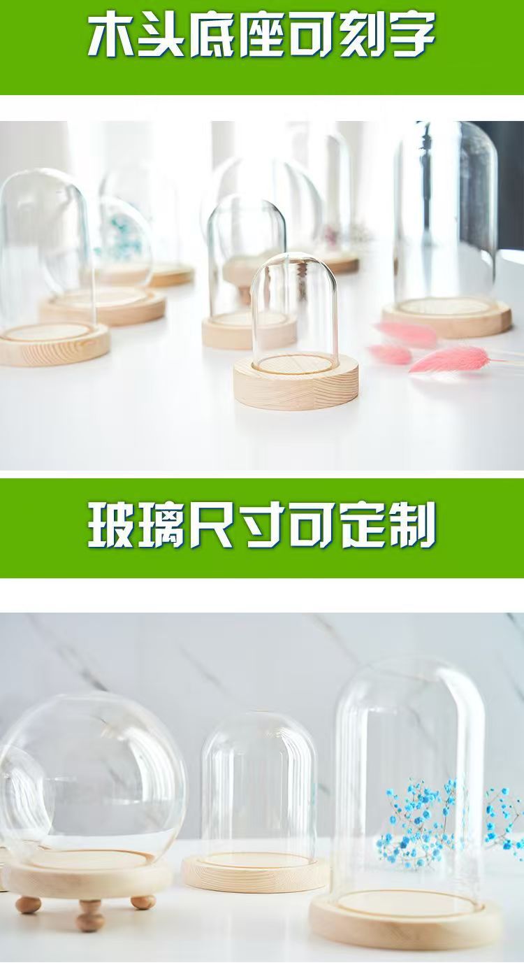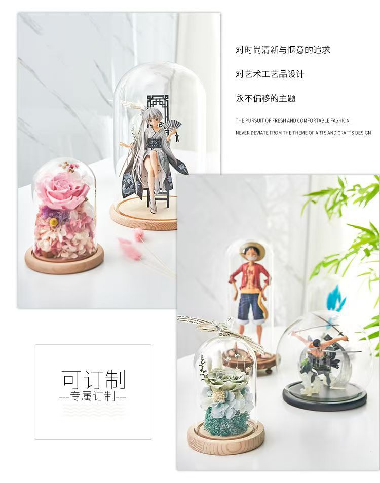 实木底座 永生花玻璃罩花瓶礼物手办玩具 led小夜灯发光底坐 定制