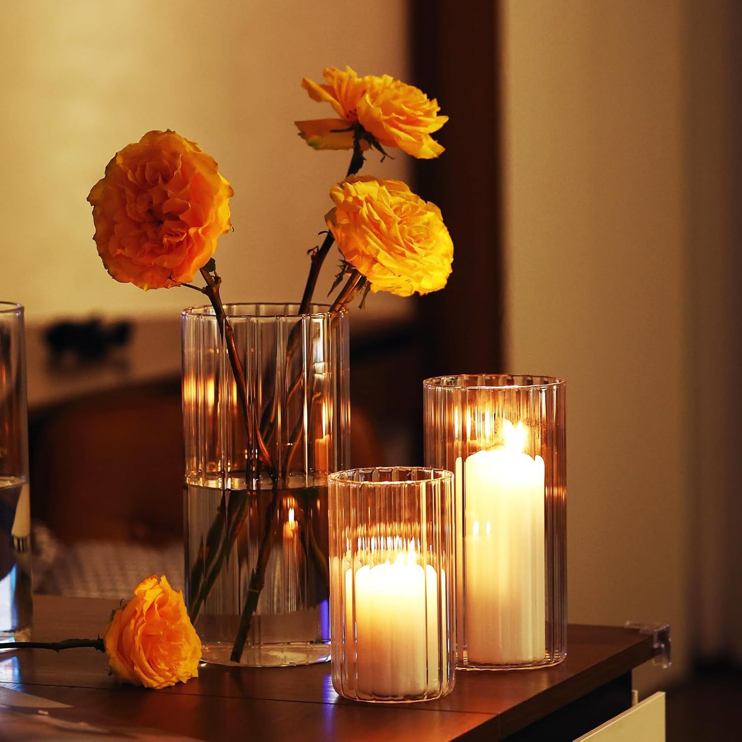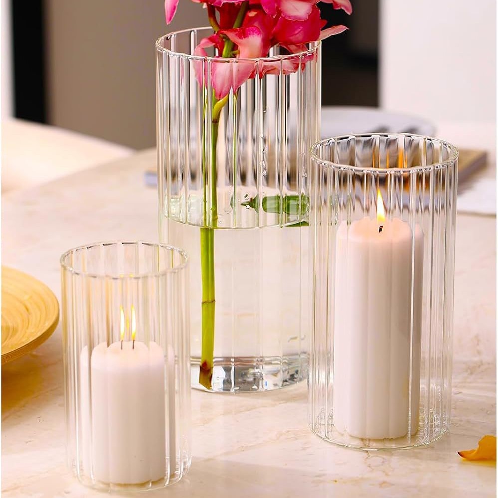 罗纹玻璃蜡烛台家居装饰圆柱蜡烛杯浪漫婚礼氛围感摆件烛台定制