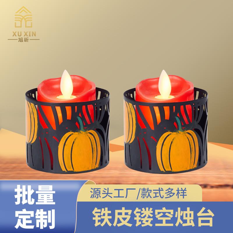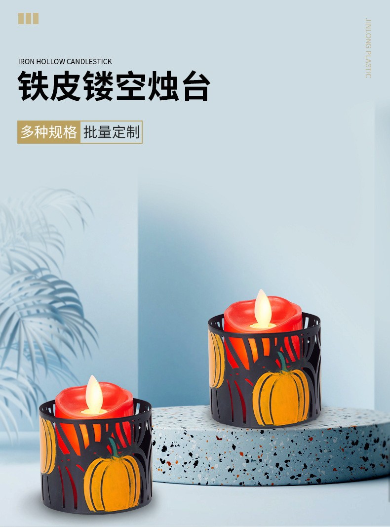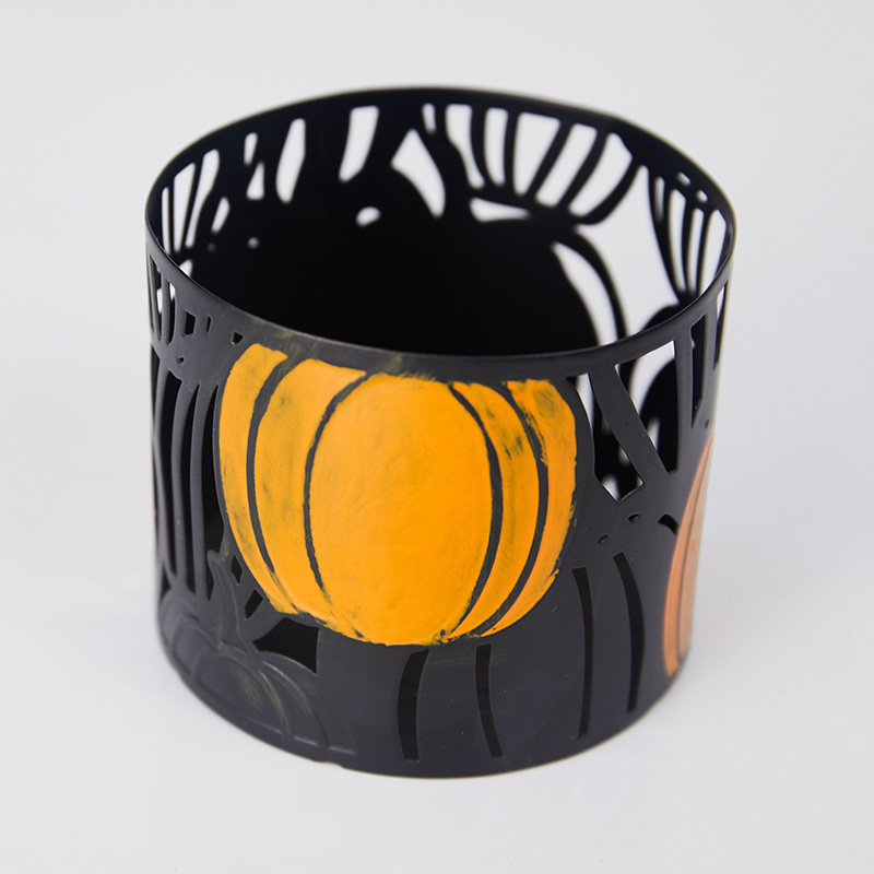 金属镂空蜡烛台创意南瓜涂鸦万圣节餐厅装饰品欧式铁艺摆件烛台
