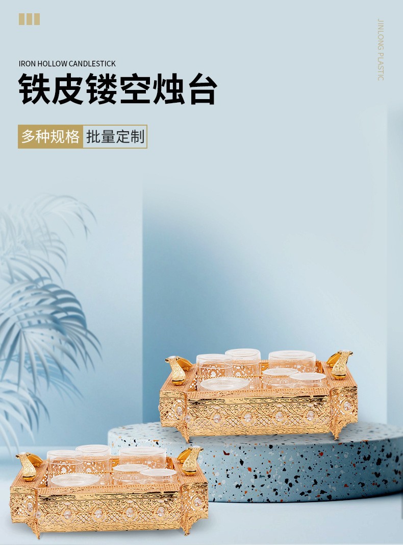 金属蜡烛台镂空透光茶盘家用茶几神台佛堂灯架供灯烛台摆件定制