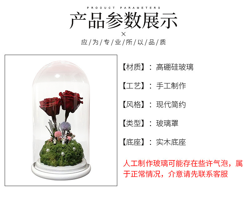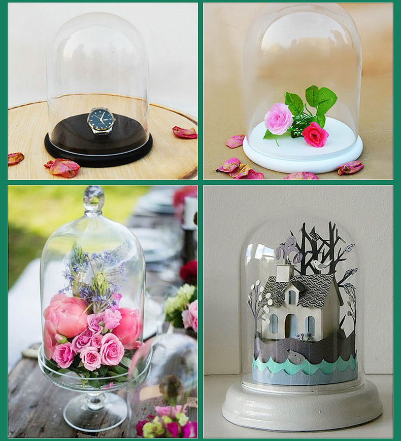 圆头玻璃罩饰品玻璃展示罩多种尺寸模型带木底座定制欧式摆件