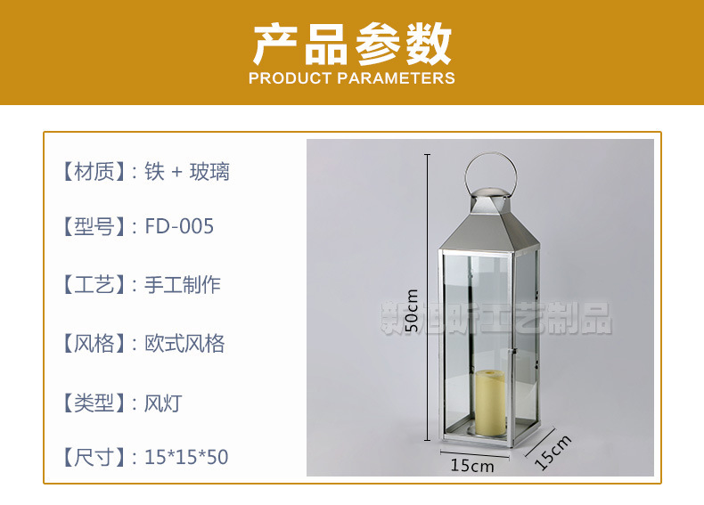 欧式户外落地款玻璃烛台摆件复古铁艺手提马灯风灯定制欧式复古
