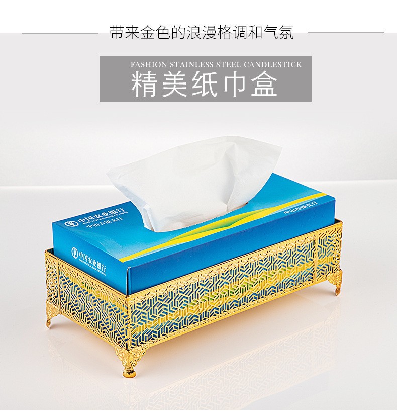 金属镂空纸巾盒欧式金色创意酒店餐厅纸巾架家居装饰客厅茶几收纳