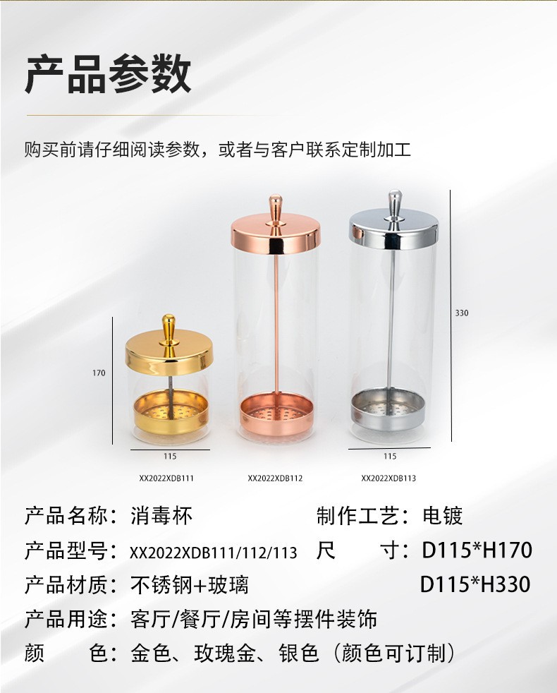 316不锈钢玻璃消毒杯美容美发美甲消毒工具剪刀剃须刀梳子 消毒罐